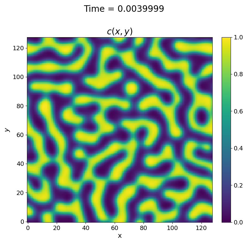 concentration_max = 0.6 concentration_min = 0.4 domain_x_size = 128 domain_y_size = 128 mobility_a = 4 mobility_b = 4 free_energy_gradient_parameter = 0.0001 bulk_free_energy = 1 checkpoint_interval = 5000 checkpoint_output_file = "out.cp" kcheckpoint_input_file = "out.cp" max_time = 4e-3 time_step = 1e-7 random_seed = 1234 use_input = 0 excitation_a = 10000 excitation_b = 20000 temperature_min = 950 temperature_max = 1050 problem = "nontemp" stabilization_term = 0 write_frequency = 1 single_precision = 0