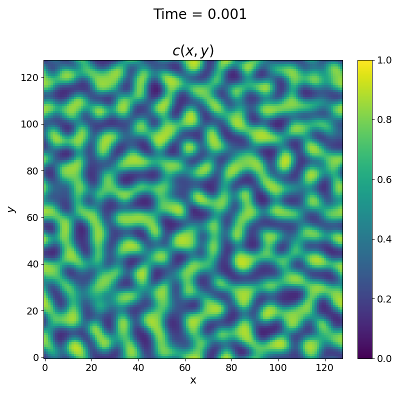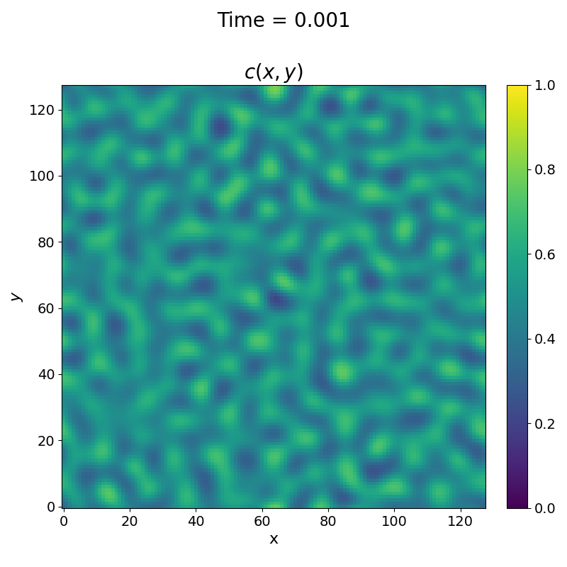 Another nice quick validation you can do is to check whether you get the same result when you change the bounds of the initial concentration grid while keeping the average the same. For example, if we vary the minimum concentration from 0.4 to 0.1 and the maximum concentration from 0.6 to 0.9 in the above input file example, we get a very similar final solution: