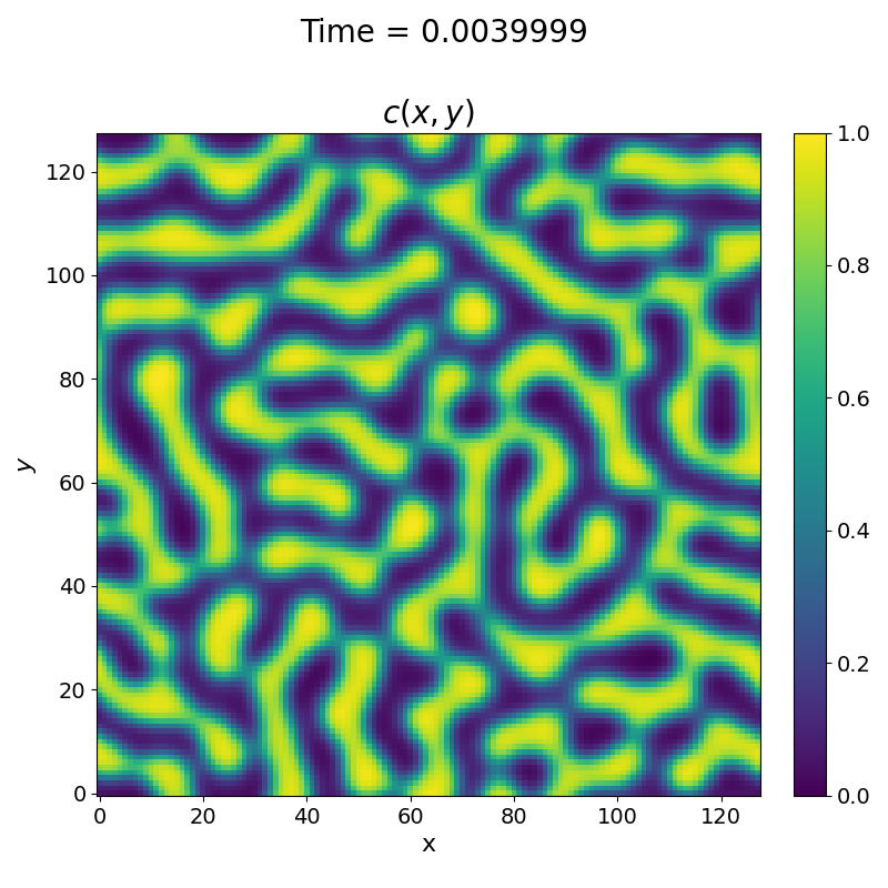 concentration_max = 0.6 concentration_min = 0.4 domain_x_size = 128 domain_y_size = 128 mobility_a = 1 mobility_b = 1 free_energy_gradient_parameter = 0.0001 bulk_free_energy = 1 checkpoint_interval = 5000 checkpoint_output_file = "out.cp" checkpoint_input_file = "out.cp" max_time = 4e-3 time_step = 1e-7 random_seed = 1234 use_input = 0 excitation_a = 86565 excitation_b = 86565 temperature_min = 950 temperature_max = 1050 problem = "temp" stabilization_term = 0 write_frequency = 1 single_precision = 0